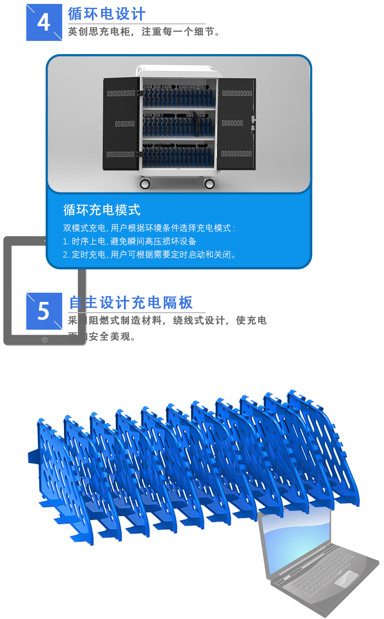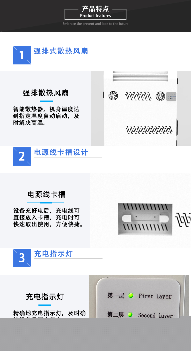 5.收納整理:每個充電位設置有電源收納盒與充電線繞線檔板