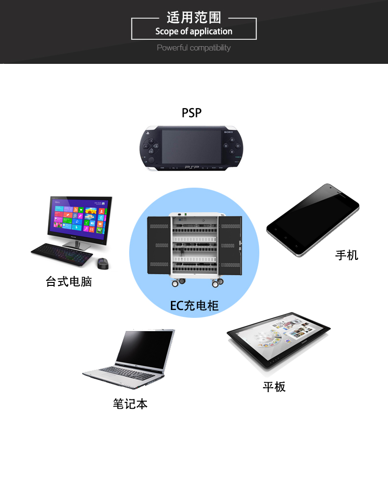 模式B:全直充模式  1)時序上電,避免瞬間高壓損壞設備     2)所有電腦同時充電。當用電環境屬于大功率安全用電環境,用戶可選擇非循環充電模式,快速充電